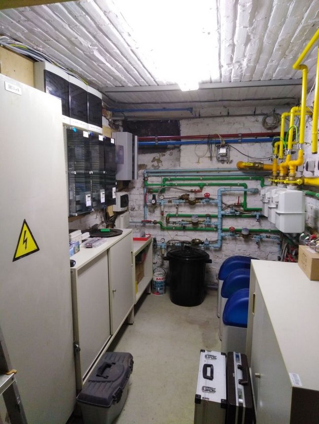 Le deuxième étage (pour mémoire PEB A 65) est, outre la chaudière murale haut rendement, équipée d'un producteur d'eau chaude fonctionnant sur la production photovoltaique.