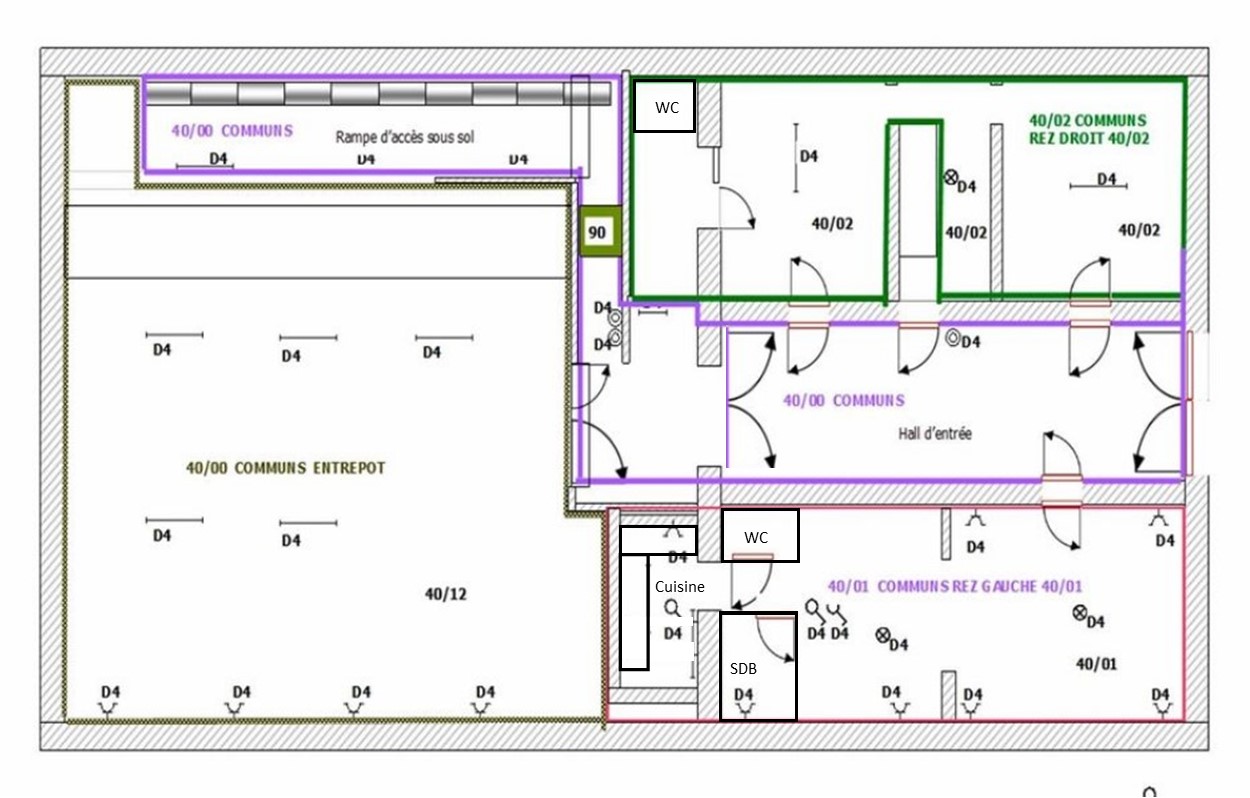Une zone a été réservée en prévision d'un système de récolte des eaux pluviales sur une ligne existante (zone sanitaire wc espace sous-sol).