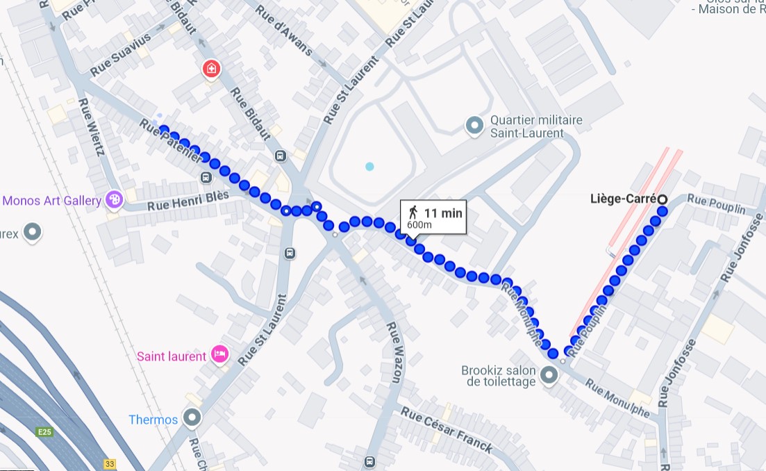 23, 53 et 61 et la gare Liège-Carré à quelques minutes à pied