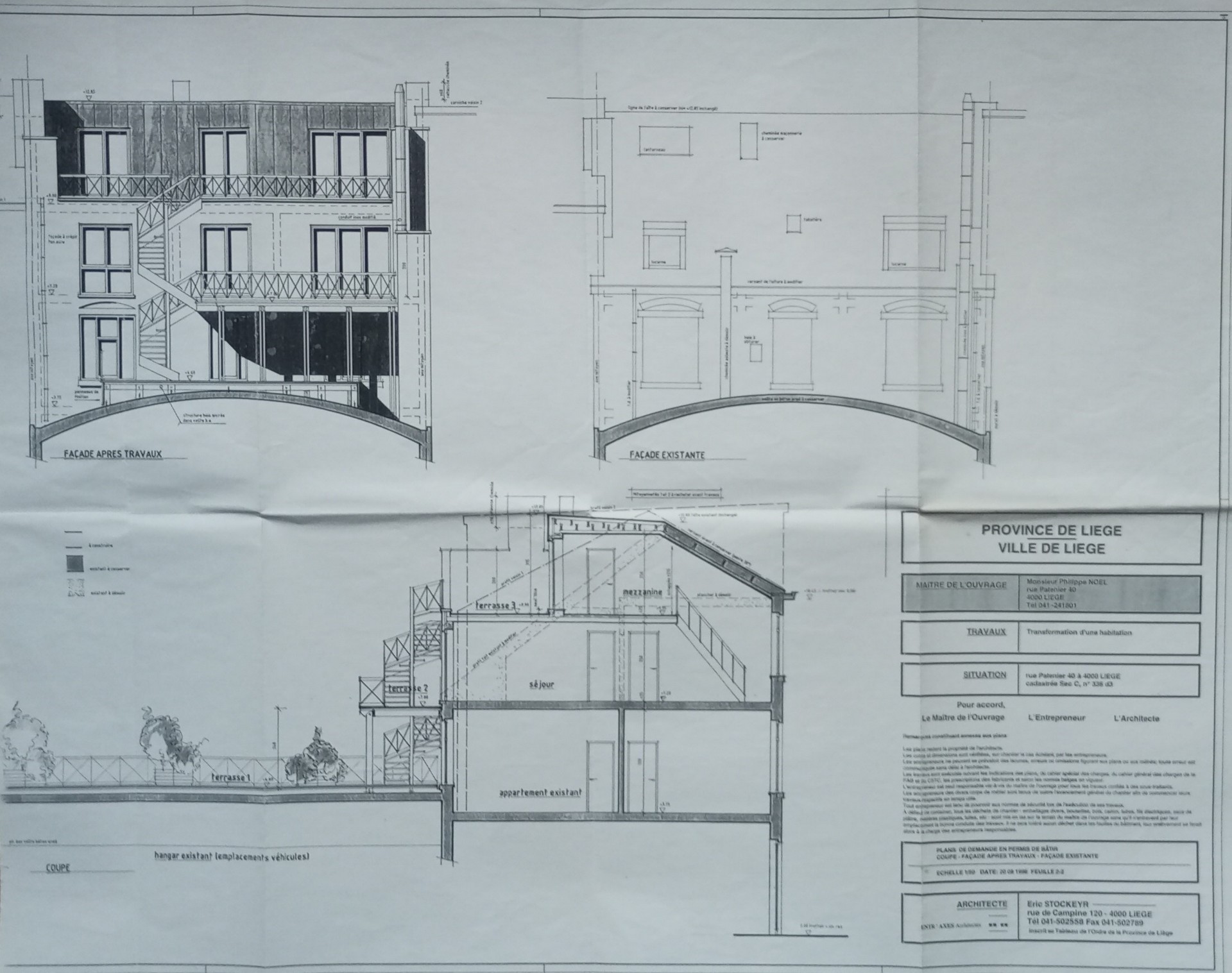 Après rénovation totale de toiture, isolations et exhaussement, le bâtiment a été converti officiellement en cinq logements séparés, d'ou la rénovation totale du point de vue sanitaires, chauffage, électricité.